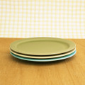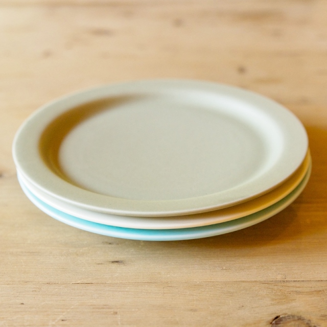 グリーン、クリーム、水色の3色をご用意しております。こちらの商品は、『半磁器』といわれる焼き物のひとつで、耐熱性に優れた特徴を持ち、陶器と磁器の間の性質を持っています。